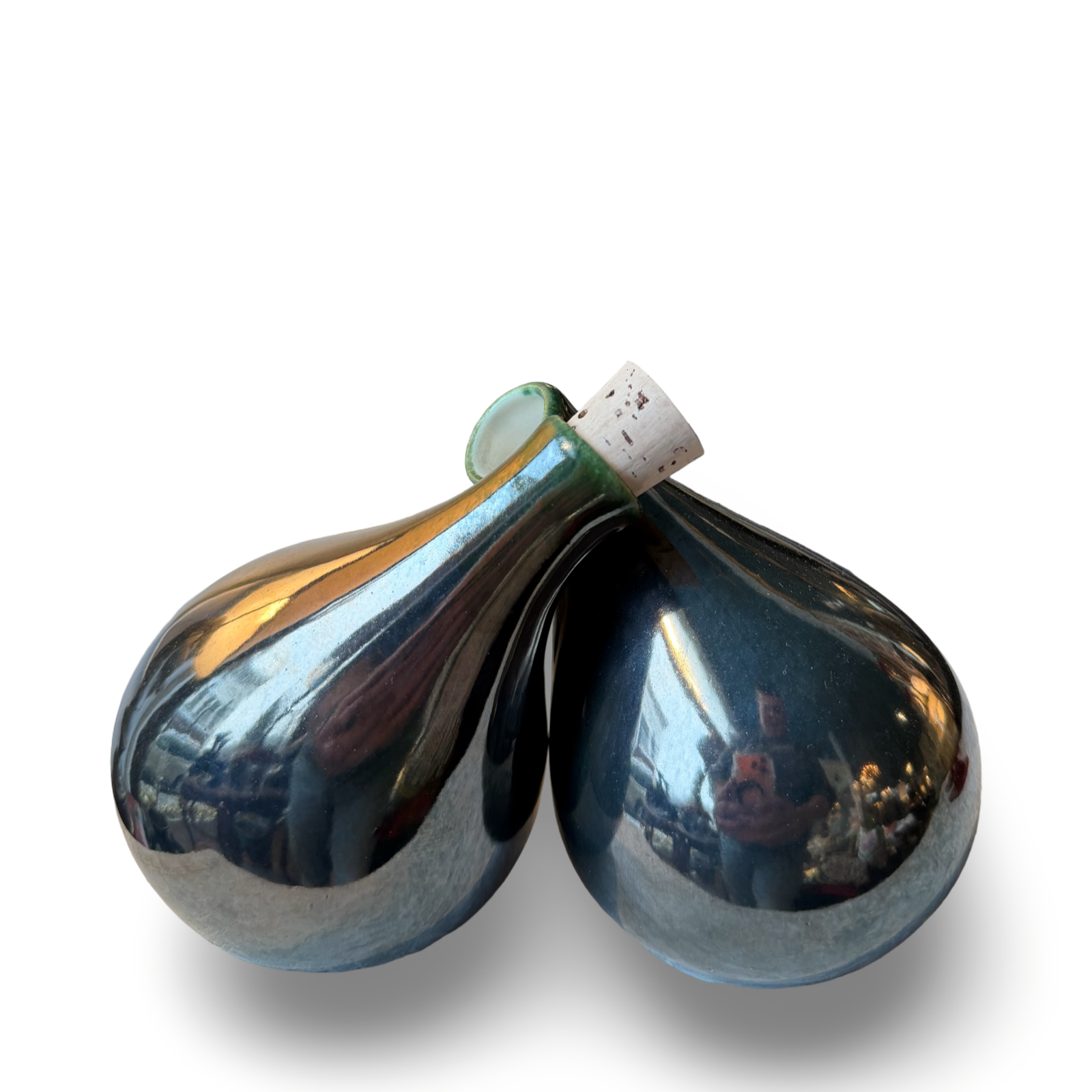 One Red Wing, gunmetal glazed oil and vinegar cruet set.